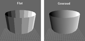 Gouraud shading, named after Henri Gouraud, is an interpolation method used in computer graphics to produce continuous shading of surfaces represented by polygon meshes. In practice, Gouraud shading is most often used to achieve continuous lighting on triangle meshes by computing the lighting at the corners of each triangle and linearly interpolating the resulting colours for each pixel covered by the triangle. Gouraud first published the technique in 1971.[1][2][3]
