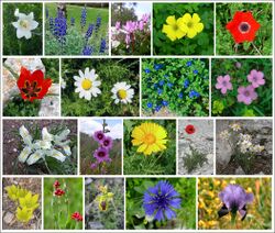 Insect-pollinated flowers use bright colours, patterns, rewards of nectar and pollen, and scent to attract pollinators such as bees.[1] Some also use drugs such as caffeine to encourage bees to return more often.[2] Advertising is influenced by sexual selection: in dioecious plants like sallow, the male flowers are brighter yellow (the colour of their pollen) and have more scent than female flowers. Honey bees are more attracted by the brighter male flowers, but not by their scent.[3]