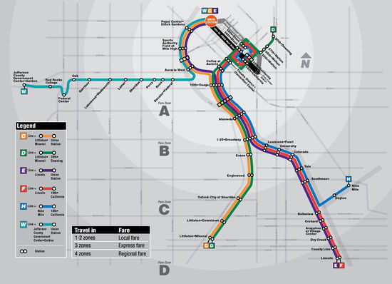 A 22-mile light rail line connecting Aurora to the rest of the Denver metro area was scheduled to open by 2016. This line, referred to as the I-225 Rail Line or R Line, was first approved by the Regional Transportation District (RTD) in 2009 and construction started in 2013. The construction cost for the R Line was estimated at $350 million in 2014.[4] An additional line running from downtown Denver to Denver International Airport called the A Line was slated for completion in 2016 and would connect with the R Line at Peoria station. As indicated on the maps below, the R Line through Aurora connects with the H Line at Nine Mile station.[5]
