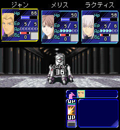 Similar to the rest of the Xenosaga series, Xenosaga: Pied Piper is a role-playing video game in which the player controls a party of characters to progress through environments linked to the main narrative. The player, taking the role of main protagonist Jan Sauer, explores environments from a 2D overhead perspective, with a combination of conversations and cinematic cutscenes advancing the narrative; battles take place in a virtual space tied to the story. Enemies encountered during exploration are fought using a turn-based battle system carrying over mechanics from Xenosaga Episode I; characters can save "Boost" points to interrupt an enemy's turn to perform an early action. Each character has specific actions they are specialized at, such as Jan being skilled with knife-based attacks. Actions include standard attacks and special attacks triggered using points accumulated by death blows dealt to enemies in previous battles.[1][2][3]