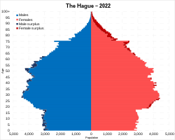 43% of the population of The Hague has two parents that were born in the Netherlands, while 15.6% has at least one parent who was born abroad in a western country, and 34.4% has at least one parent that was born in a non-western country.[35]