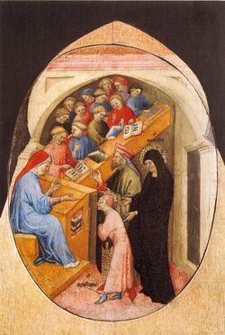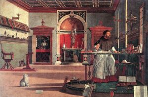 Painting of Saint Augustine by Tomás Giner, year 1458, tempera on panel Diocesan Museum of Zaragoza, Aragon, Spain. | |