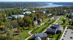 Hanover College is situated on 650 acres (2.6 km2) of land overlooking the Ohio River. The land features several climbing paths and cliffs, as well as the only view of the Ohio from which three bends in the river can be seen.[citation needed] The campus is characterized by the Georgian style architecture. The quad is crowned by the Parker Auditorium, named for the former Hanover College president, Albert Parker.