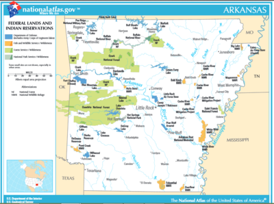 Federal lands and Indian reservations in Arkansas Click to enlarge. |