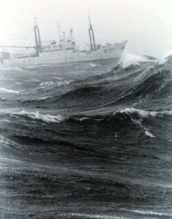 In oceanography, sea state is the general condition of the free surface on a large body of water—with respect to wind waves and swell—at a certain location and moment. A sea state is characterized by statistics, including the wave height, period, and spectrum. The sea state varies with time, as the wind and swell conditions change. The sea state can be assessed either by an experienced observer (like a trained mariner) or by using instruments like weather buoys, wave radar or remote sensing satellites.