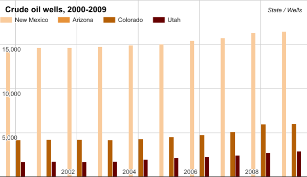 Crude oil wells in New Mexico and neighboring states (2000-2009)