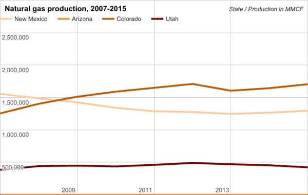 Natural gas production in New Mexico and neighboring states (2007-2015)