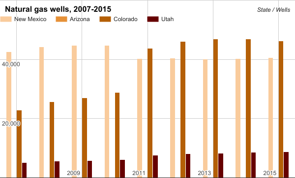 Producing natural gas wells in New Mexico and neighboring states (2007-2015)