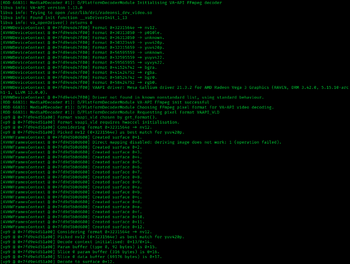 A log of Firefox showing VA-API being used for video decoding acceleration