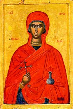 "[I]n the Gospel of Mary it is Peter who is opposed to Mary’s words, because she is a woman. Peter has the same role in the Gospel of Thomas and in Pistis Sophia. In Pistis Sophia the Mary concerned is identified as Mary Magdalene."[2] The final scene in the Gospel of Mary may also provide evidence that Mary is indeed Mary Magdalene. Levi, in his defense of Mary and her teaching, tells Peter "Surely the Savior knows her very well. That is why he loved her more than us."[16] In the Gospel of Philip, a similar statement is made about Mary Magdalene.[17]