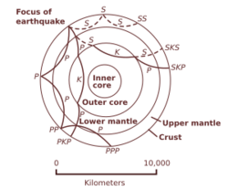 Seismic velocities and boundaries in the interior of the Earth sampled by seismic waves.
