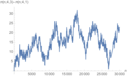 so the lead in the race switches back and forth infinitely many times. The phenomenon that π4,3(x) is ahead most of the time is called Chebyshev's bias. The prime number race generalizes to other moduli and is the subject of much research; Pál Turán asked whether it is always the case that π(x;a,c) and π(x;b,c) change places when a and b are coprime to c.[32] Granville and Martin give a thorough exposition and survey.[31]