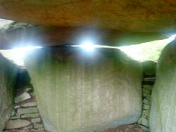 Another frequent theme of megalith-related folklore is that of hidden treasures, guarded by fairies, dwarfs or subterraneans.[19][20] In these tales, humans who try to retrieve the treasure are usually hindered or punished by the magic beings.[19] The treasure tales have contributed both to long-time preservation of megaliths and to tomb raiding, depending on the degree of superstition of the audience.[19]