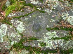 Some megaliths have cup-marks (Näpfchen) on them, which Holtorf describes as "simple, roughly hemispherical depressions of about 2–10 cm diameter and up to 3 cm depth."[15] The origin and purpose of the cup-marks is uncertain.[15] Their distribution corresponds with the distribution of the dolmens, and they are found on undisturbed dolmens as well as stones derived from destroyed megalith sites.[15]