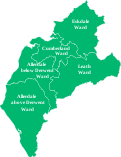 The term ward is a corresponding county division in the four northern counties of Cumberland, Durham, Northumberland and Westmorland.