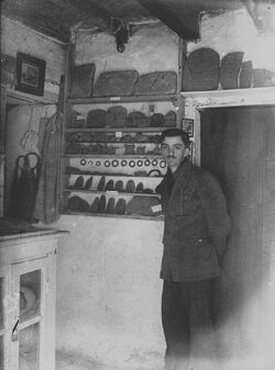 The initial discovery was made on 1 March 1924 by 17-year-old Émile Fradin (born August 8, 1906, died February 10, 2010, age 103 [5]) and his grandfather Claude Fradin. Émile was guiding a cow-drawn plow when the cow's foot became stuck in a cavity. Freeing the cow, the Fradins uncovered an underground chamber, with walls of clay bricks and 16 clay floor tiles, containing human bones and ceramic fragments.