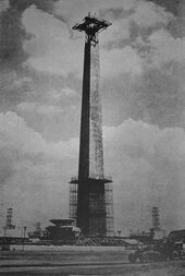 After independence, the process of nation-building in Indonesia and demolishing the memory of colonialism was as important as the symbolic building of arterial roads, monuments, and government buildings. The National Monument in Jakarta, designed by Sukarno, is Indonesia's beacon of nationalism. In the early 1960s, Jakarta provided highways and super-scale cultural monuments as well as Senayan Sports Stadium. The parliament building features a hyperbolic roof reminiscent of German rationalist and Corbusian design concepts.[76] Built-in 1996, Wisma 46 soars to a height of 262 metres (860 feet) and its nib-shaped top celebrates technology and symbolises stereoscopy.