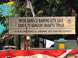 According to PALYJA, the service coverage ratio increased substantially from 34% (1998) to 65% (2010) in the western half of the concession.[244] According to data by the Jakarta Water Supply Regulatory Body, access in the eastern half of the city served by PTJ increased from about 57% in 1998 to about 67% in 2004 but stagnated afterward.[245] However, other sources cite much lower access figures for piped water supply to houses, excluding access provided through public hydrants: one study estimated access as low as 25% in 2005,[246] while another estimated it to be as low as 18.5% in 2011.[247] Those without access to piped water get water mostly from wells that are often salty and unsanitary. As of 2017, according to the Ministry of Energy and Mineral Resources, Jakarta had a crisis over clean water.[248]