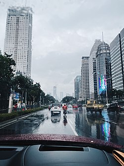 Jakarta faces significant air pollution, particularly during the dry season from August to December. Dry air during this period allows pollutants to remain suspended in the atmosphere for extended periods, contributing to poor air quality.[59][60]