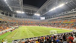 Jakarta hosted the 1962 Asian Games,[200] and the 2018 Asian Games, co-hosted by Palembang.[201] Jakarta also hosted the Southeast Asian Games in 1979, 1987, 1997 and 2011 (supporting Palembang). Gelora Bung Karno Stadium[202] hosted the group stage, quarterfinal and final of the 2007 AFC Asian Cup along with Malaysia, Thailand and Vietnam.[203][204] The largest capacity retractable roof stadium in Asia, Jakarta International Stadium, is located at Tanjung Priok district, completed in 2022. After the success of the Asian Games, the city made a bid to host the 2032 Summer Olympics but did not enter into the final evaluation and was awarded to Brisbane. If the city had been chosen, it would have been the first city in Southeast Asia to host the senior Olympic Games and the first to be held in the region since the 2010 Summer Youth Olympics.