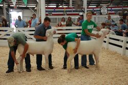 Some farmers who keep sheep also make a profit from live sheep. Providing lambs for youth programs such as 4-H and competition at agricultural shows is often a dependable avenue for the sale of sheep.[138] Farmers may also choose to focus on a particular breed of sheep in order to sell registered purebred animals, as well as provide a ram rental service for breeding.[139] A new option for deriving profit from live sheep is the rental of flocks for grazing; these "mowing services" are hired in order to keep unwanted vegetation down in public spaces and to lessen fire hazard.[140]