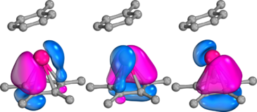 Although stibanes have a lone pair electrons, their antibonding orbitals with electron-withdrawing substituents renders them Lewis acidic. Sb(C6F5)3 (3) has three σ*(Sb–C6F5) orbitals and three Lewis acidic sites. However, as shown in the electrostatic potential map of Sb(C6F5)3, only one site is accessible to Lewis bases due to the asymmetric arrangement of the three aryl rings.[10]