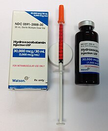 The standard treatment for PA has been intramuscular injections of cobalamin in the form of cyanocobalamin (CN-Cbl), hydroxocobalamin (OH-Cbl) or methylcobalamin.[47]