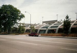 The 1994 Northridge earthquake struck on January 17 and caused $400 million in damage to the campus, the heaviest damage ever sustained by an American college campus.[9] The epicenter was less than two miles (3 km) away on a previously undiscovered blind thrust fault. Later the same month, Vice President Al Gore visited with a promise of funds to help with the reconstruction.[9] Entire sections of the main library, the art building and several other major structures were either physically unusable or too hazardous to occupy. Among the structures judged to be so seriously damaged that repair was not a practical option were the Fine Arts building, designed by noted modernist architect Richard Neutra, and the South Library, the oldest permanent building on campus. The art courtyard survived. Due to inadequate earthquake engineering, the parking structure next to the Matadome was completely destroyed. It is currently a grass field used for kinesiology instruction, though the driveway formerly used to enter it is still visible from Zelzah Avenue. The large American flag atop the Oviatt Library was installed after the earthquake and has been flown ever since.[38] In the aftermath of the 1994 earthquake, CSUN civil engineering faculty and students took part in the research on earthquake protection of building structures, in particular, in the field of seismic performance, vibration control, and base isolation.[39]