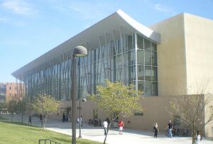 Because of its proximity to Hollywood and its diverse array of modern architecture, the campus has long been an attractive filming location for motion picture and television productions.[153] An early example is the 1966 film The Glass Bottom Boat, for which parts of Sierra Hall and the Engineering Building were temporarily dressed up as NASA facilities. It has appeared in American Idol, Arrested Development, Ringer, Chuck, Dexter, My Name Is Earl, CSI: Crime Scene Investigation, Criminal Minds, Commander in Chief, Van Wilder, Six Feet Under, The Karate Kid, The Bionic Woman, Battlestar Galactica, The Office, McMillan & Wife, Son in Law, Bring It On: Fight to the Finish, Legally Blonde 2, Buffy the Vampire Slayer, Roswell, The Nick Cannon Show, Quincy, M.E., Georgia Rule, and Sky High (in which the Oviatt Library is prominently featured). The Barry Levinson-directed What Just Happened was filmed at the Oviatt Library and featured Robert De Niro and Sean Penn. The pilot of the remake of the television series "Knight Rider" filmed a car chase on the campus, which stood in for Stanford University. During the spring break of 2008, the library served as Starfleet Academy for Star Trek (2009 version).[154] The parking lots to the north of the campus were featured in the movie Superbad.[155] In September 2014, CSUN's Matador Bookstore and Oviatt Library served as backdrops for the Netflix movie We Are Your Friends, starring Zac Efron.[156] In the Fall of 2016, CSUN's Citrus Hall, Jerome Richfield Hall, and Sierra Quad were featured in the television series Lucifer. The Valley Performing Arts Center saw extensive use in the web-series VGHS.