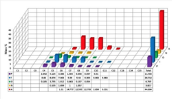 GC-VUV can be used for bulk compositional analysis because compounds share spectral shape characteristics within a class. Proprietary software applies fitting procedures to quickly determine the relative contribution of each compound category present in a sample. Retention index information is used to limit the amount of VUV library searching and fitting performed for each analyte, enabling the automated data processing routine to be completed quickly. Compound class or specific compound concentrations can be reported as either mass or volume percent.