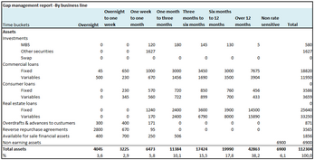 - Slotting every asset, liability and off-balance sheet items into corresponding time bucket based on effective or liquidity duration maturity