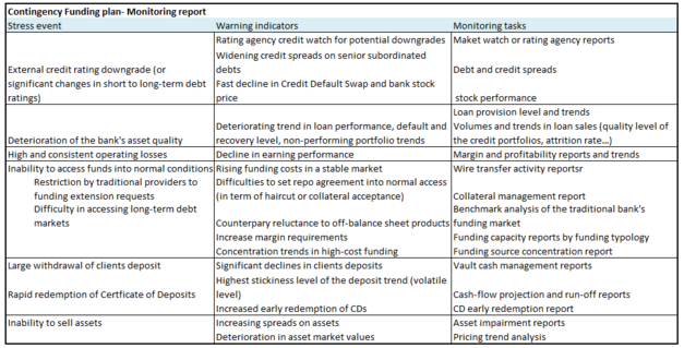 - Monitoring of the bank capacity to raise each funds quickly and without bad cost effects as well as the monitoring of the dependence factors affecting its capacity to raise them