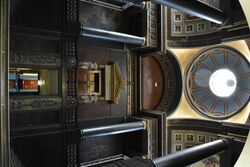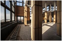 Interior of the book tower with the view of Ghent