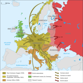The pact contained secret protocols[49] which divided Europe into spheres of influence between Nazi Germany and the Soviet Union. In practice, it allowed Stalin to pursue imperialistic policies without any objections from the Nazis, including the aforementioned invasion of eastern Poland,[50] occupation of the Baltic states,[51] a disastrous invasion of Finland,[52] and the takeover of Bessarabia.[53] Stalin apologists tend to justify his imperialism by saying that he wanted to spread the communist revolution to neighboring countries.