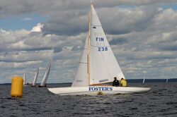 A modernized Finnish GRP variant of Hai; hull based on Requin, aluminium spar. Mainsail 16.5 square metres (178 sq ft), jib 9.5 square metres (102 sq ft), spinnaker 36 square metres (390 sq ft). Some wooden Hai boats have also been rigged for Hai 2000 class.