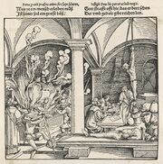In England, statute 22 passed in 1532 by Henry VIII, made boiling a legal form of capital punishment. It began to be used for murderers who used poisons after the Bishop of Rochester's cook, Richard Rice, gave a number of people poisoned porridge, resulting in two deaths in February 1532.[6] Boiling to death was employed again in 1542 for a woman who also used poison.[7][8] It was also used for counterfeiters, swindlers and coin forgers during the Middle Ages.[9]