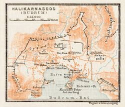 | “ | Having settled the lovely promontory sung of as dear to the immortals by the sweet stream of Salmakis, she (Halikarnassos) controls |