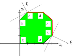 Due to its simplicity, the above problem can be represented in criterion space by replacing the x's with the f 's as follows: