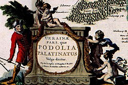 After the death of the Grand Duke of Lithuania Vytautas in 1430, Podolia was incorporated into Podolian Voivodeship of the Kingdom of Poland, with the exception of its eastern part, the Bracław Voivodeship, which remained with Lithuania, both forming part of the Polish–Lithuanian union. With the Union of Lublin of 1569, eastern Podolia passed from Lithuania to Poland with the Polish–Lithuanian Commonwealth. The Kamieniec Podolski Fortress was nicknamed the "gateway to Poland",[1] whereas the city of Kamieniec Podolski itself as one of Poland's major cities enjoyed voting rights during the royal election period.[2] Podolia was invaded several times by the Crimean Tatars and Turks, and during the Deluge, also by Transylvanians and Russians, with notable Polish victories at Udycz (1606), Czarny Ostrów (1657), Uścieczko (1694).