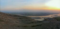 Jalalabad (/dʒəˈlæləˌbæd/; جلال آباد [d͡ʒä.lɑː.lɑː.bɑːd̪]) is the fifth-largest city of Afghanistan. It has a population of about 356,274,[3] and serves as the capital of Nangarhar Province in the eastern part of the country, about 130 kilometres (80 mi) from the capital Kabul. Jalalabad is located at the junction of the Kabul River and the Kunar River in a plateau to the south of the Hindu Kush mountains.[4] It is linked by the Kabul-Jalalabad Road to the west and Peshawar in Khyber Pakhtunkhwa, Pakistan , to the east through Torkham and the Khyber Pass.
