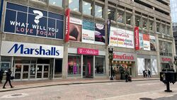 In 1990, TJX expanded into an additional store brand division, and at the same time it first went international, as it entered the Canadian market by acquiring the five-store Winners chain.[11] Two years later, it launched its third brand, HomeGoods, in the United States.[11] TJX's expansion beyond North America came in 1994, when the fourth brand division, T.K. Maxx, was founded in the United Kingdom , and then expanded into Ireland.[11] In 1995, TJX doubled in size when it acquired Marshalls, its fifth brand. T.J. Maxx and Marshalls later became consolidated as two brands under a single division, The Marmaxx Group.[11][12] The following year, TJX Companies Inc. was added to the Standard & Poor's S&P 500 Composite Index, which consists of 500 of the largest companies in the United States.[13] TJX sold Hit or Miss, a discount mall based clothing store in 1995 as well through an employee leveraged buyout.[14]