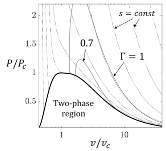 For fluids with high molecular complexity, state-of-the-art thermodynamic models predict values of in the single-phase region close to the saturation curve, where the speed of sound is largely sensitive to density variations along isentropes.[18] Such fluids belong to different classes of chemical compounds, including hydrocarbons, siloxanes and refrigerants.[5][18]