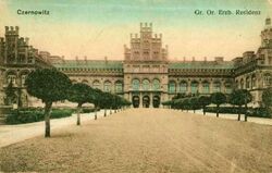 Chernivtsi National University (full name Yuriy Fedkovych Chernivtsi National University, Ukrainian: Чернівецький національний університет імені Юрія Федьковича) is a public university in the City of Chernivtsi in Western Ukraine . One of the leading Ukrainian institutions for higher education, it was founded in 1875 as the Franz-Josephs-Universität Czernowitz when Chernivtsi (Czernowitz) was the capital of the Duchy of Bukovina, a Cisleithanian crown land of Austria-Hungary. Today the university is based at the Residence of Bukovinian and Dalmatian Metropolitans building complex, a UNESCO World Heritage Site since 2011.