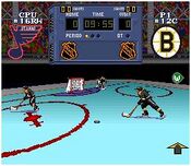 A special Mode 7 viewpoint gives the player a three-dimensional perspective that helps to keep him focused on the puck, the center ice and the surrounding action. Battery backup lets the player save the player's progress throughout the Stanley Cup playoffs. Other features include season and game statistics, three difficulty levels (Junior, NHL and NHL Pro), and the ability to skip games against particular opponents. At the end of each period and after the game, a sportscaster will give the player a summary of the action.