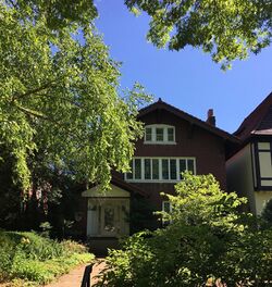 Burroughs moved to Lawrence, Kansas in 1981, taking up residence at 1927 Learnard Avenue where he would spend the rest of his life. He once told a Wichita Eagle reporter that he was content to live in Kansas, saying, "The thing I like about Kansas is that it's not nearly as violent, and it's a helluva lot cheaper. And I can get out in the country and fish and shoot and whatnot."[66] In 1984, he signed a seven-book deal with Viking Press after he signed with literary agent Andrew Wylie. This deal included the publication rights to the unpublished 1952 novel Queer. With this money he purchased a small bungalow for $29,000.[8](p596) He was finally inducted into the American Academy and Institute of Arts and Letters in 1983 after several attempts by Allen Ginsberg to get him accepted. He attended the induction ceremony in May 1983. Lawrence Ferlinghetti remarked the induction of Burroughs into the Academy proved Herbert Marcuse's point that capitalistic society had a great ability to incorporate its one-time outsiders.[8](p577)