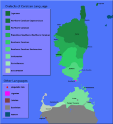 The Corsican language is divided into two main varieties: Cismuntanu and Ultramuntanu, spoken respectively northeast and southwest of the Girolata–Porto Vecchio line. This division was due to the massive immigration from Tuscany which took place in Corsica during the lower Middle Ages: as a result, the Cismuntanu became very similar to the Tuscan dialects, being part of the Italo-Dalmatian language group, while the Ultramuntanu could keep its original characteristics which make it much more similar to a Southern Romance language, such as Sardinian (Sardu).[43][44] Therefore, due to the differences between the main dialectal varieties, many linguists classify Corsican as an Italo-Dalmatian language,[45] while others consider it a Southern Romance one.[46]