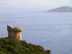 In the 16th century, the island entered into the fight between Spain and France for supremacy in Italy.[8] In 1553, a Franco-Ottoman fleet occupied Corsica, but the reaction of Spain and Genoa, led by Andrea Doria, reestablished the Genoese supremacy on the island, confirmed by the Peace of Cateau-Cambresis.[9] The unlucky protagonist of this episode was Sampiero di Bastelica, who would later come to be considered a hero of the island. Their power was reinstated, the Genoese did not allow the Corsican nobility to share in the government of the island and oppressed the inhabitants with a heavy tax burden. On the other hand, they introduced the chestnut tree on a large scale, improving the diet of the population, and built a chain of towers along the coast to defend Corsica from the attacks of the Barbary pirates from North Africa.[10] The period of peace lasted until 1729, when the refusal to pay taxes by a peasant sparked the general insurrection of the island against Genoa.[11]