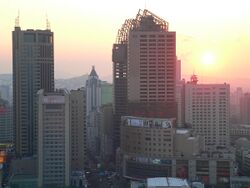 As the economic center in Xinjiang, Ürümqi has expanded its urban area since the 1990s. The CBDs in the city increased rapidly all around the major districts. Despite the old city areas being primarily in the south, the development in the north part began since the late 1980s. The completion of the new office tower for Ürümqi Municipal Government in 2003 at Nanhu Square (南湖广场) in Nanhu Road marked a shift of the city center to the north. Lacking a subway, the city commenced the construction of viaducts for Outer Ring Road (外环路) since 2003, which considerably facilitates transport. Youhao Road (友好路) and surrounding neighborhood, is the commercial center for business, shopping and amusement. Youhao Group (友好集团), the namesake local enterprise, owns a major market share of retails. Maison Mode Urumqi (乌鲁木齐美美百货), open since 2008, became one of the few notable department stores for luxury merchandise in the city.[66] The Ürümqi Economic and Technological Development Zone (UETD) located in the northern Toutunhe District, has been a leading base for steel, machinery manufacturing, biochemistry and other industrial innovations.