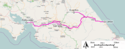A third Central American inter-oceanic railroad began operation in 1910 as a connection between Puntarenas and Limón in 1,067 mm (3 ft 6 in) gauge. It currently (2019) sees no passenger service.