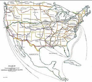 A transcontinental railroad in the United States is any continuous rail line connecting a location on the U.S. Pacific coast with one or more of the railroads of the nation's eastern trunk line rail systems operating between the Missouri or Mississippi Rivers and the U.S. Atlantic coast. The first concrete plan for a transcontinental railroad in the United States was presented to Congress by Asa Whitney in 1845.[2]